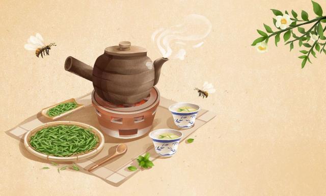 “清明见芽,谷雨见茶”。这时,茶叶经过细雨的洗礼,颜色翠绿,品质上乘,香气宜人,是收获的最佳时机。因此,谷雨也被称为“全员喝茶日”。每个人都在家里啜饮,或者聚集在茶馆里,在茶香中感受谷雨季节的悠闲意境。