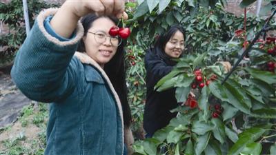 从这个月开始,位于天津市武清区河西务镇的漫森活农场迎来了樱桃收获季。在农场的樱桃温室里,一簇簇晶莹剔透的樱桃高高地挂在树枝上,果实圆润饱满,颜色娇艳,吸引了许多游客收获。