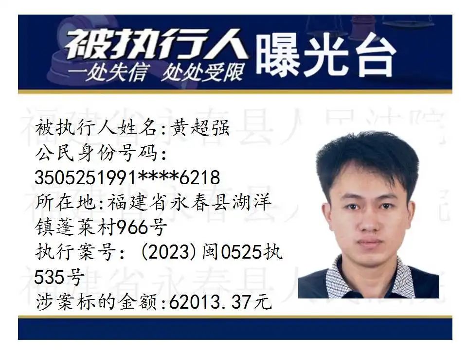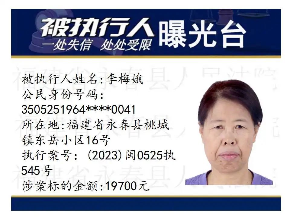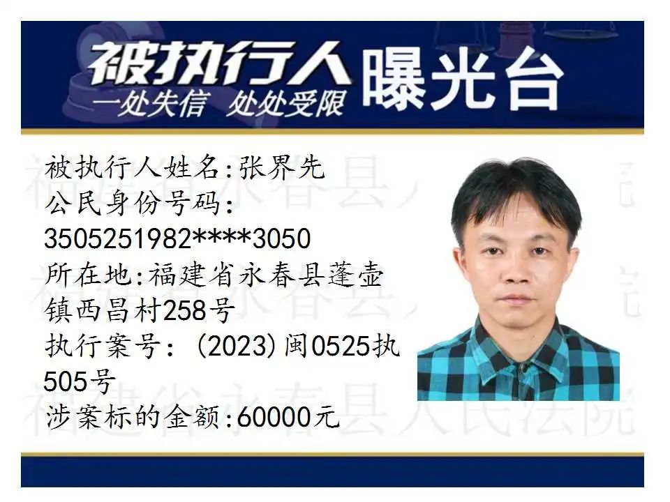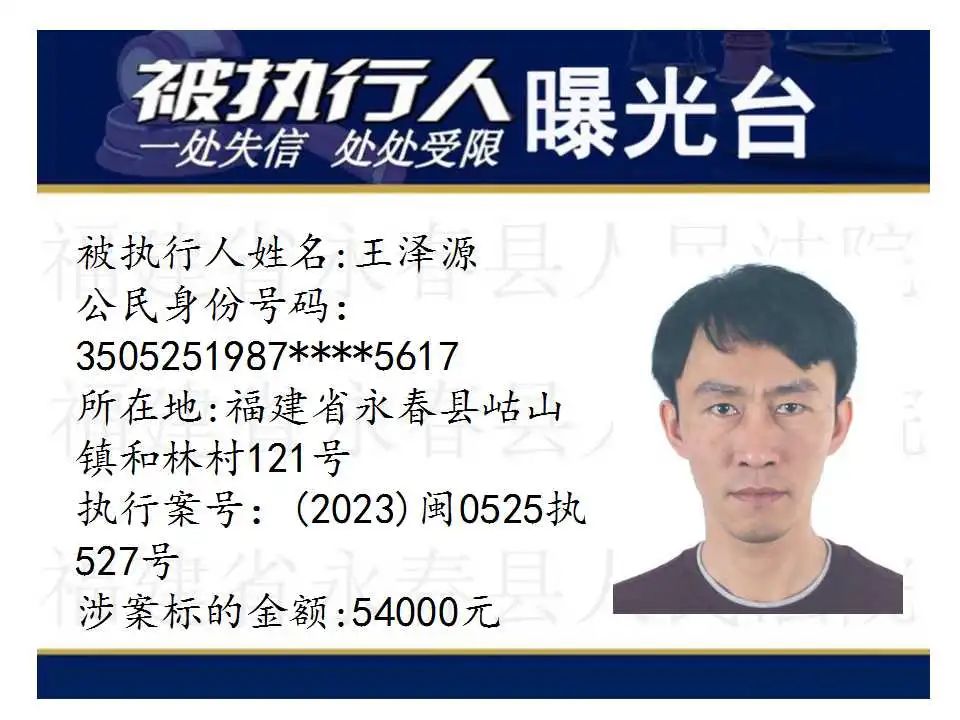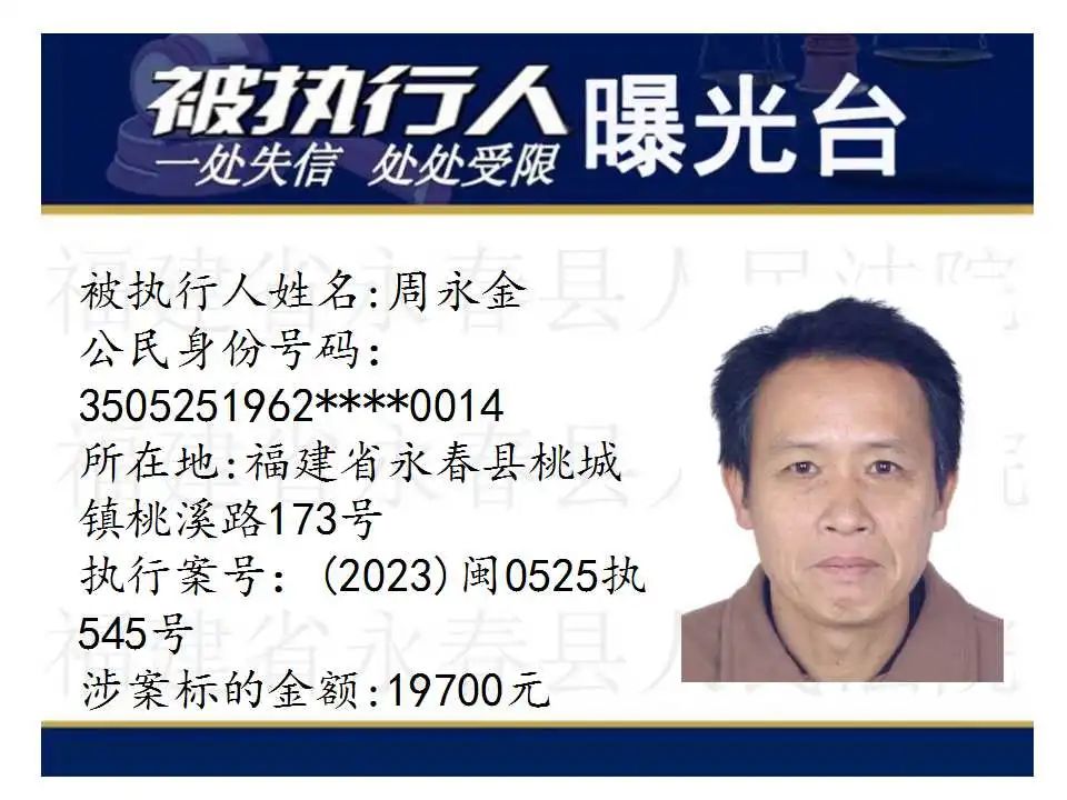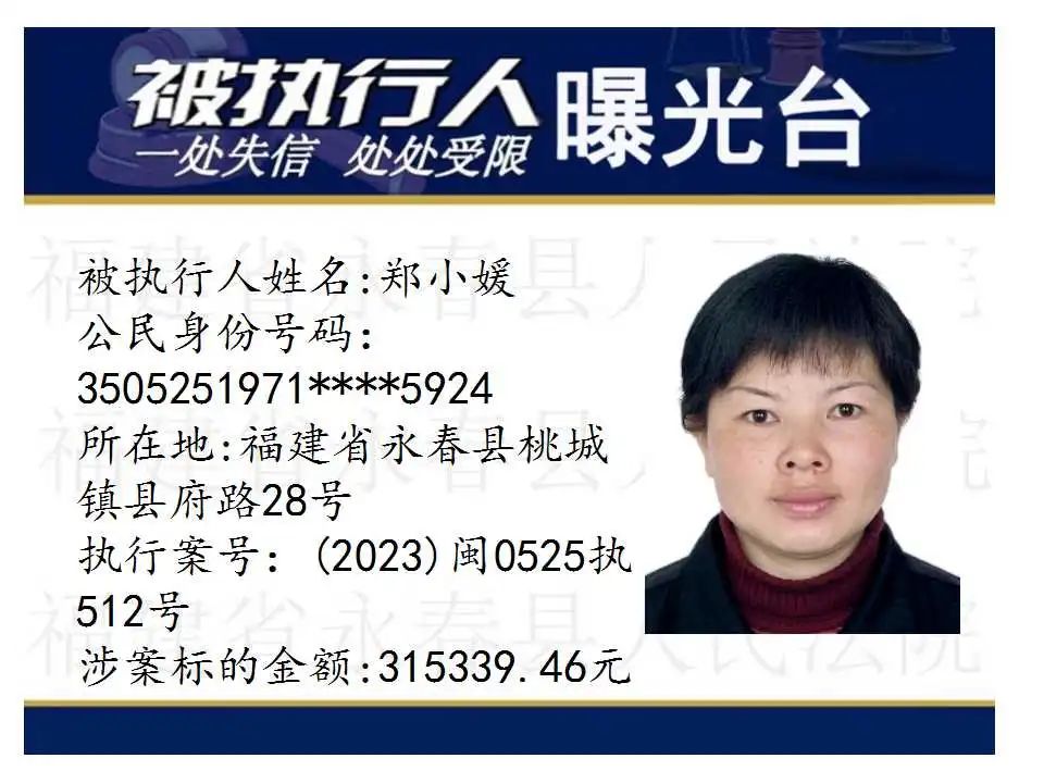 原标题:《失信曝光台》永春法院公布失信执行人名单