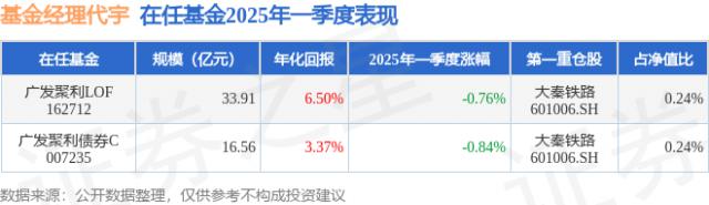 2025年第一季度,广发聚利LOF基金季度下跌0.76%