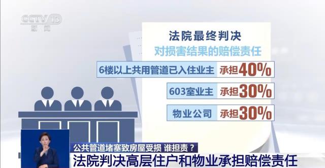 法院认为,原告提供的证据不足以证明房地产开发公司在下水管道设计和施工过程中存在过错,房地产开发公司不承担赔偿责任。法庭的最终判决,6 楼上同用管道已入住业主,603 房屋所有者和物业公司各自承担损害结果。 40%、30%、30% 赔偿责任。判决结束后,案件当事人均服诉,有关当事人已自动履行赔偿义务。