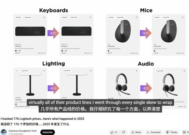 在美国,罗技商品悄然上涨,最高涨幅达到 25%