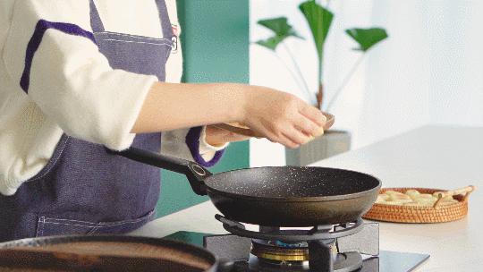 将锅预热不刷油,放入蛋饼,盖上盖子。