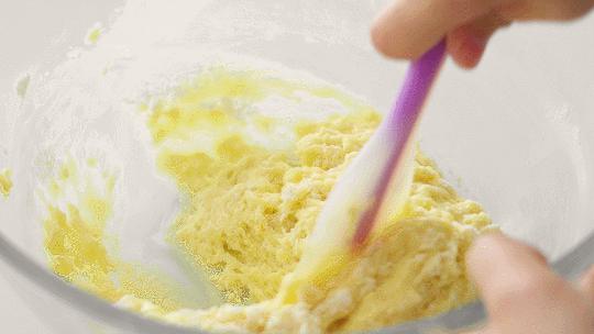 倒入面粉和油,搅拌均匀,揉成光滑的面团。