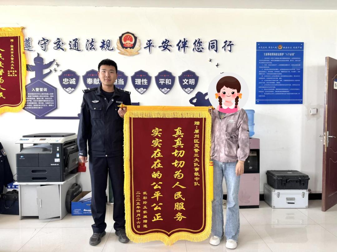 这面印有“真正为人民服务,真正公平合理”的横幅,可以追溯到固原市原州区九龙路和建业街4月11日发生的一起交通事故。当时,原州区交警三大队事故组工作人员接到报警后,迅速赶到现场,对事故现场进行了仔细调查和取证。