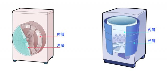 (左图为滚筒洗衣机,右图为波轮洗衣机)