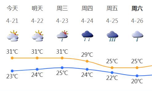 深圳气象台预报,我市阴天,局地短雨;气温 23-31 ℃;偏南风 2-3 等级;相对湿度 60%-95%。