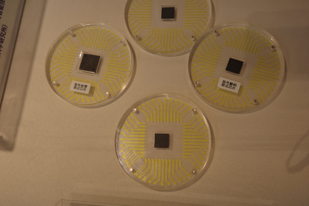 4月18日,全自主国产低功耗专用智能芯片在中国科学院脑科学与智能技术卓越创新中心脑认知与类脑智能国家重点实验室展台上展示。