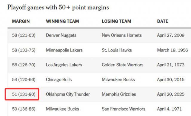 北京时间 4 月 21 一天早上,雷霆 131 比 80 狂胜灰熊。51 分的分差在 NBA 在季后赛历史上排名第五(2009 年掘金和 1956 年度湖人队曾经赢过 58 分数),但是在季后赛 G1 在历史上排名第一。灰熊为什么要面对? 51 分为惨败?双方的差距真的有那么大吗?