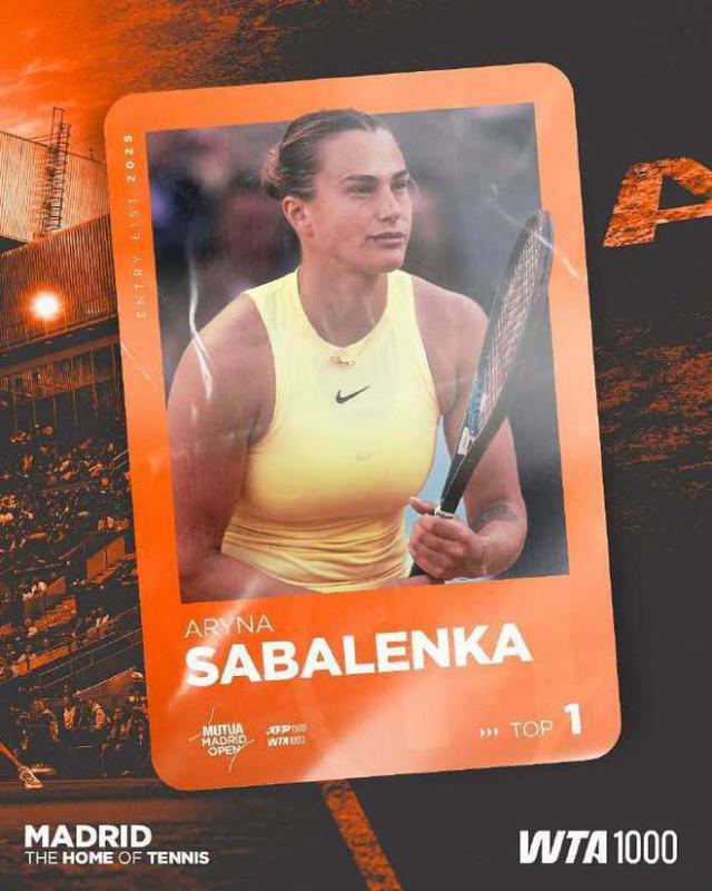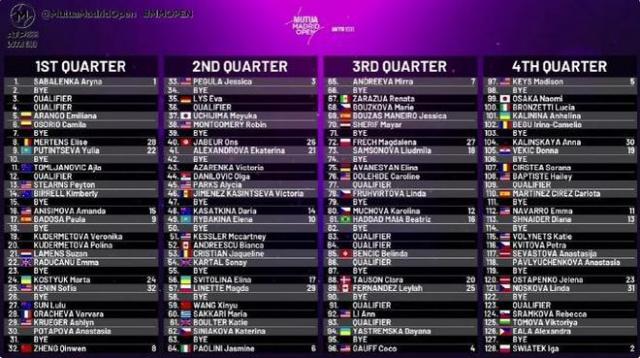 这是今年的首站红土 1000 比赛,马德里站比赛将在比赛中进行。 4 月 22 日 -5 月 4 日进行。 萨巴伦卡领衔世界第一,还有卫冕冠军斯瓦泰克等著名球员,加上两位中国球员郑钦文和王欣瑜凭借排名直接入选。