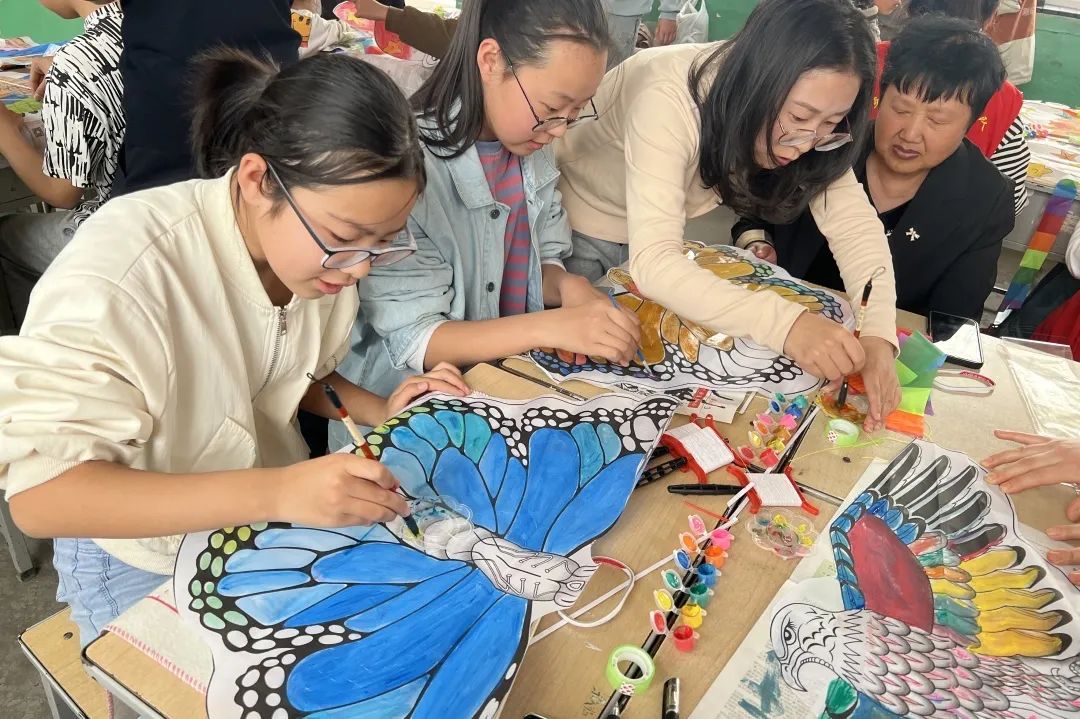 通过图文并茂的课件,“爱妈妈”向孩子们讲述了风筝。 "木鸢" 到 "纸鸢" 千年演变史。接着,孩子们在 "爱妈妈"" 在指导下,我个人感受到了从创意绘图、穿针引线到精细固定的每一个制作阶段。一个多小时后,五颜六色、形状各异的风筝在孩子们手中诞生。
