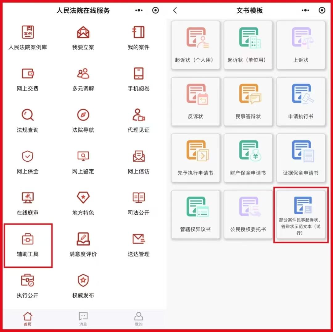 微信搜索小程序“人民法院在线服务”(首次使用需要注册核实)-辅助工具-文件模板-部分案件民事起诉、答辩示范文本(实施)-选择下载填写相应纠纷。