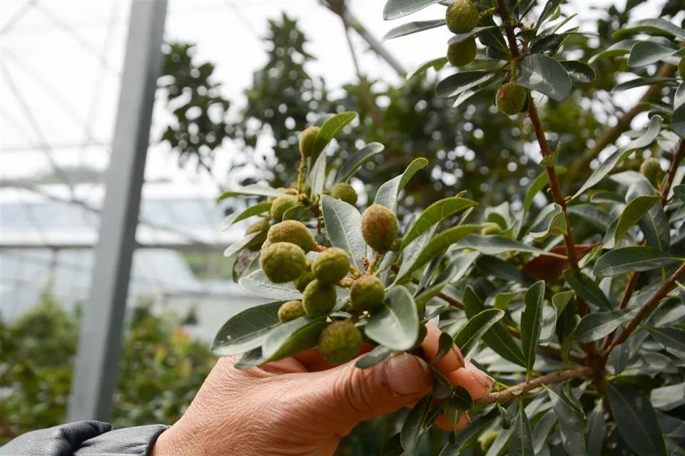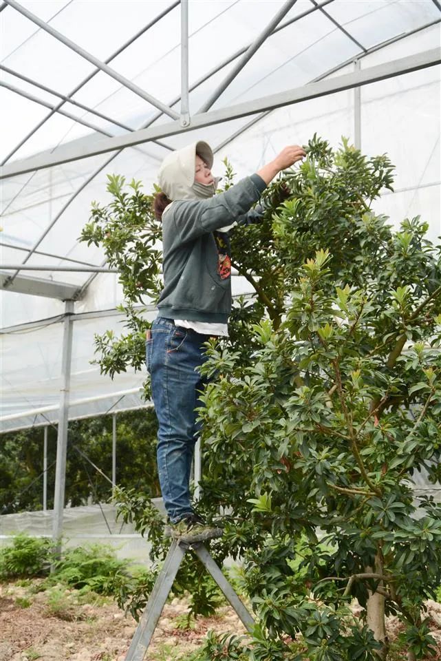 吴士荣说:“有些树枝可以长十几个果实。我们先做一个初步的疏果,只剩下两个。到了变色期,最后一个果实也要定下来,最后一个树枝只保留一个果实。这样做是为了保证精品水果的数量。到时候每个树枝都会挂一个精品水果,质量有保证。自然,它有望以好的价格出售。”