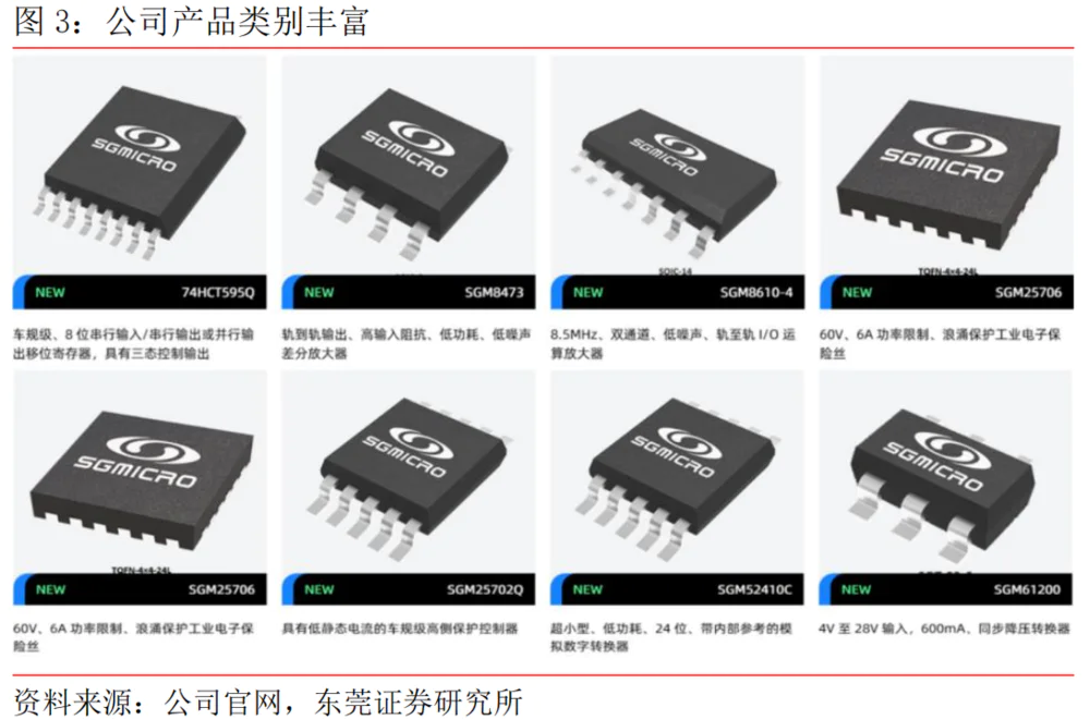 圣邦微电子(以下简称“圣邦股份”)是国内稀缺的具有全品类模拟芯片设计能力的供应商,也是国内为数不多的实现高档模拟芯片替代的优秀企业之一。公司的产品线涵盖信号链和电池管理两个领域,其中信号链芯片包括运算放大器、数据转换器、接口芯片等一系列产品。电源管理芯片包括 DC/DC 转换器,LDO稳压器,电池保护芯片等类别。