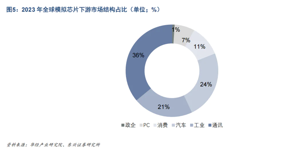模拟 IC 通信、工业和汽车是下游市场的主要应用领域,占比均超过。 20%。模拟 IC 下游市场分散且普遍, 通信、汽车、工业、消费电子等多个领域,其中,通信(包括智能手机)、与汽车相比,工业和汽车占20%以上。