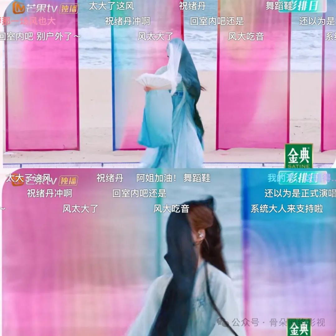 然而,随着镜头越来越近,海边风已经把舞台上的姐姐们吹得站不住了,但她们不得不拼命唱歌跳舞。户外收音让侯佩岑的歌声很难用“沙沙”的背景音修复。网友们在弹幕里苦笑。“原来‘乘风’是让姐姐们在台风中疯狂,‘破浪’是让舞台在暴雨中漂浮。”