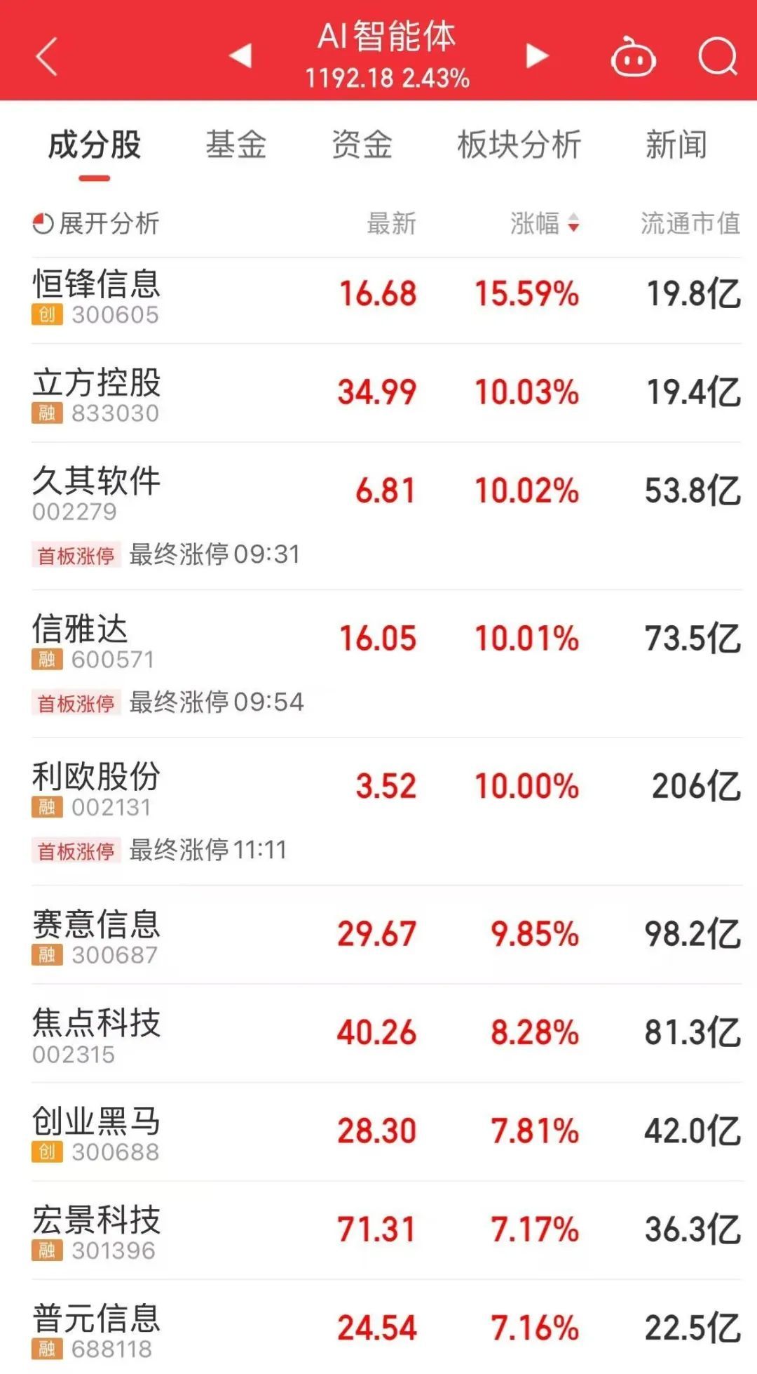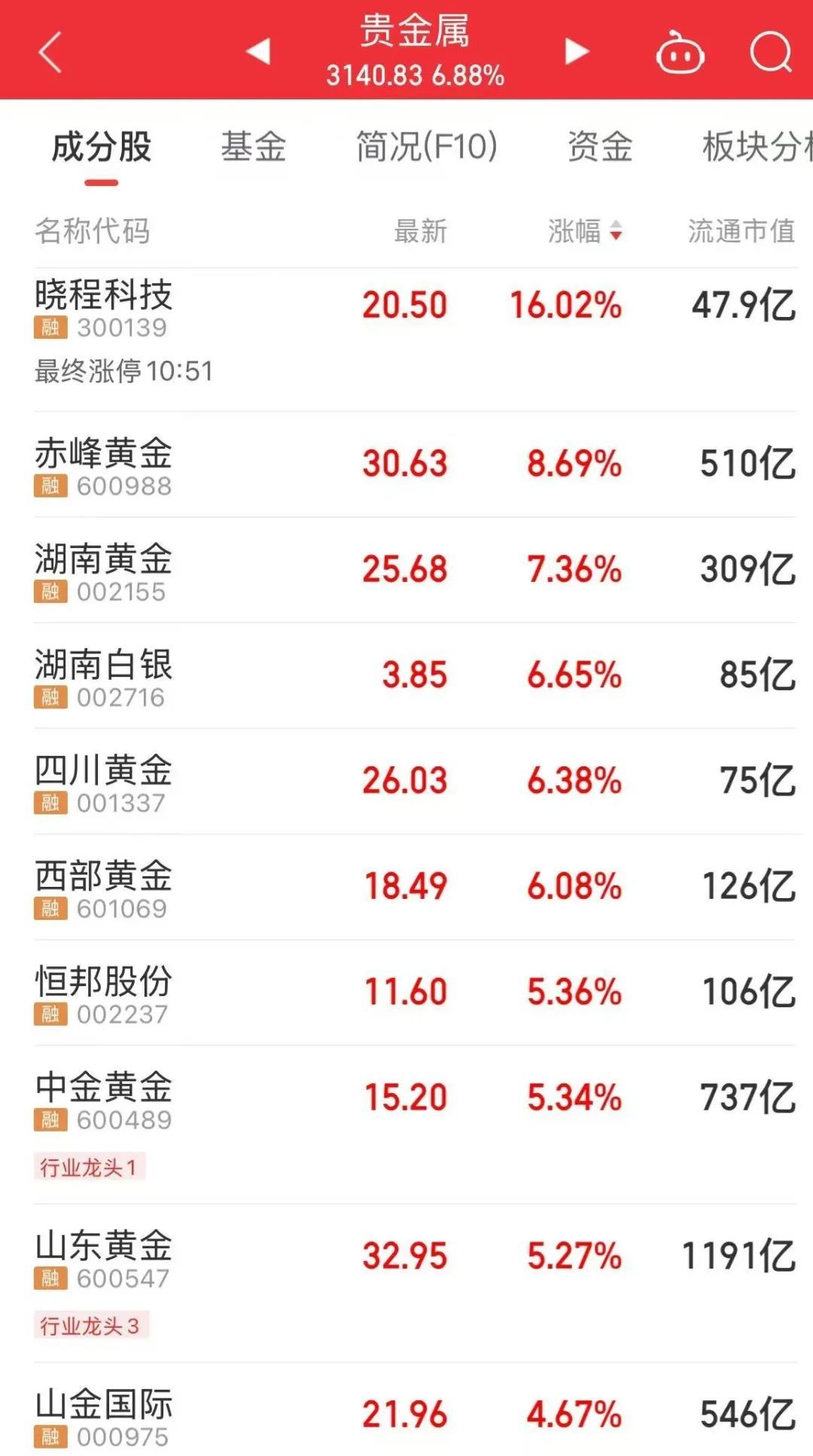 今早,贵金属板块爆发,晓程科技、赤峰黄金、湖南黄金等股票大幅上涨。