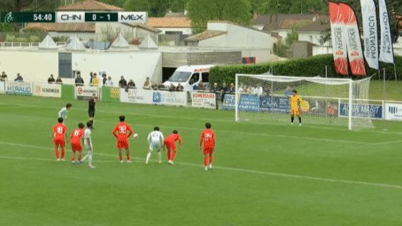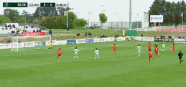 墨西哥队在第一 31 每分钟都有威胁性的攻击,汪修昊奋不顾身体倒下堵漏成功,随后对方 10 球员跟上补射,足球打到倒地的墨西哥球员身上,然后映射到网上。