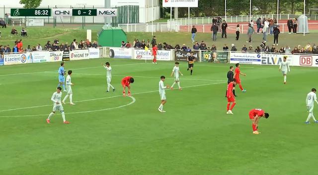 第 74 几分钟后,一名墨西哥球员因报复而退出。在比赛的最后阶段,中国队猛击墨西哥球门,但不幸的是,他们最终没能完成比赛。