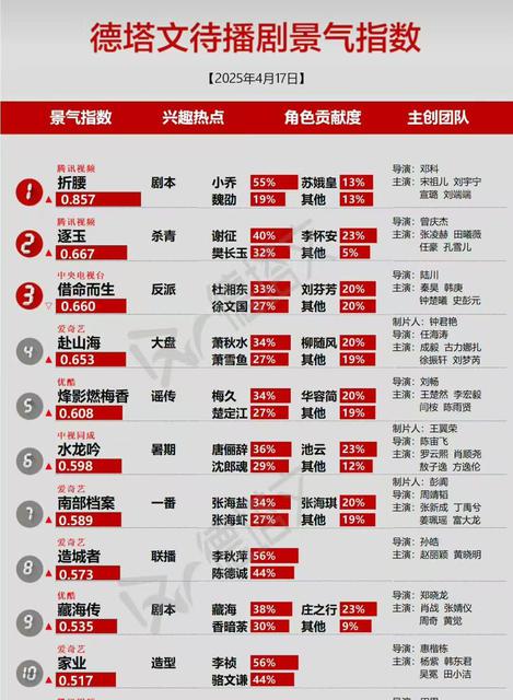 待播剧热榜:《赴山海》第四,《逐玉》第二,新升起的居然第一。