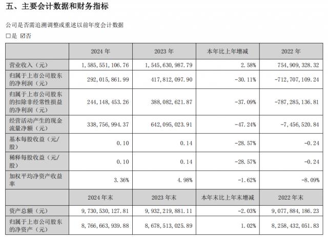 扣除非净利润:2024 年 2.44 同比减少1亿元 37.09%;