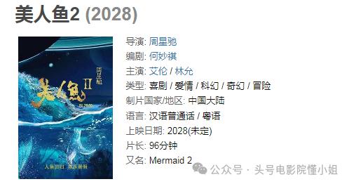 周星驰那部 2018 《美人鱼》于年开机 现在看来是暂时等不及了,豆瓣首页的上映时间已经改到了。 2028 年了。