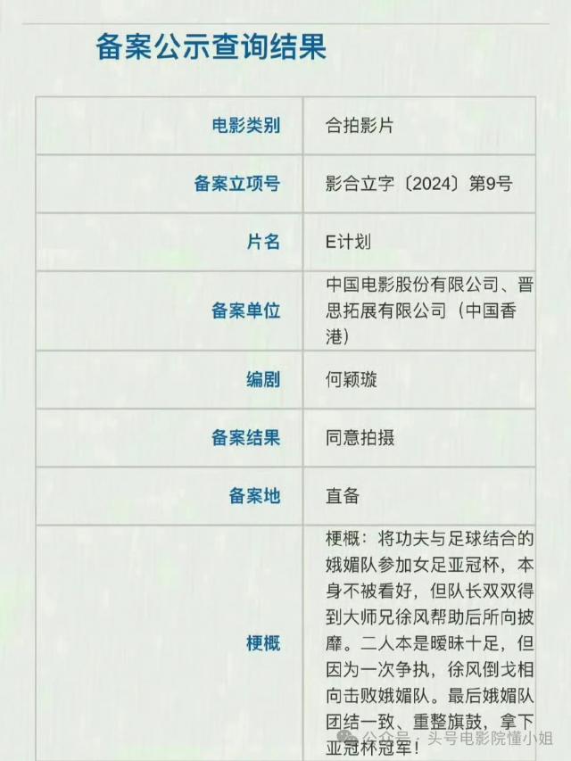 据影片备案显示,《女足》报备时的片名是《E 计划,故事梗概如下:
