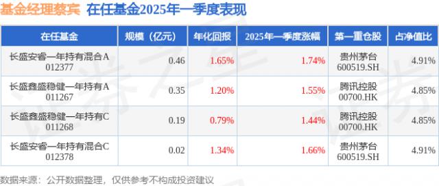 2025年第一季度蔡宾表现,长盛安睿在混合A基金季度增长1.74%