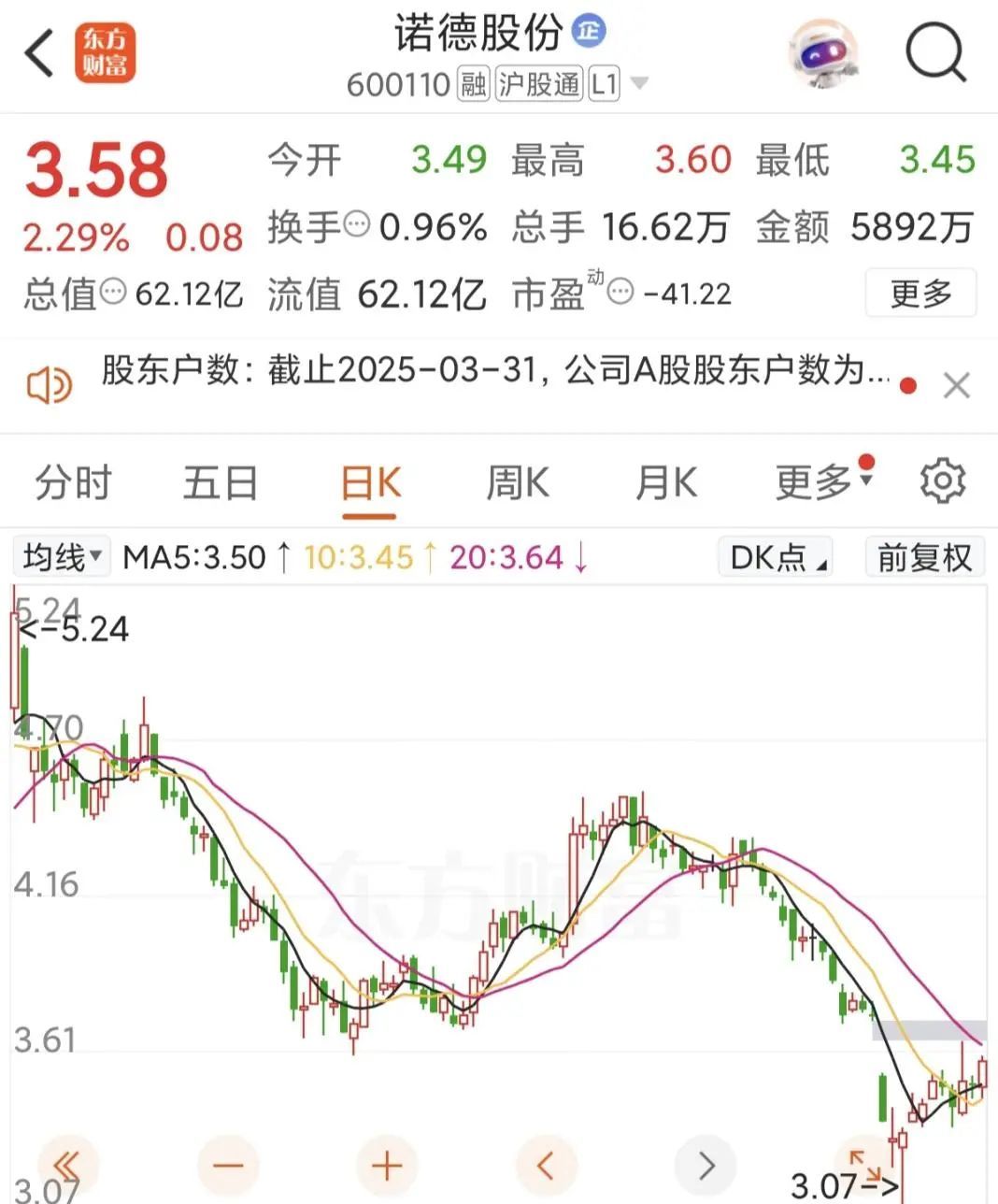 截至4月21日收盘,诺德每股3.58元,市值超过62亿元。