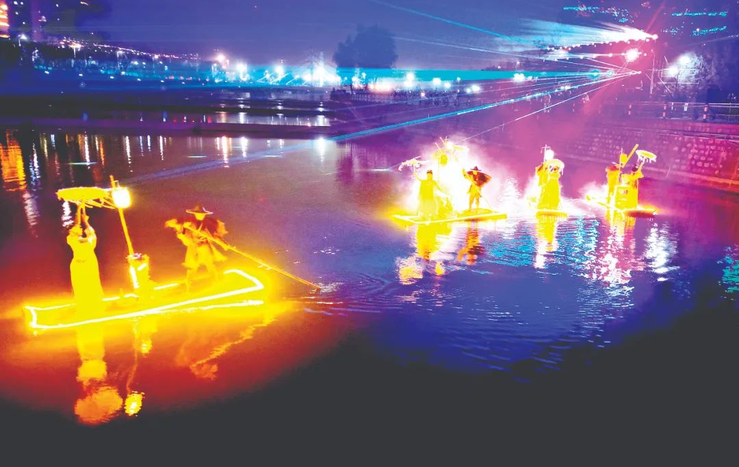 原标题:“美丽阳泉看过来|五彩缤纷的夜色桃河——走进《桃河韵》现场演出现场。