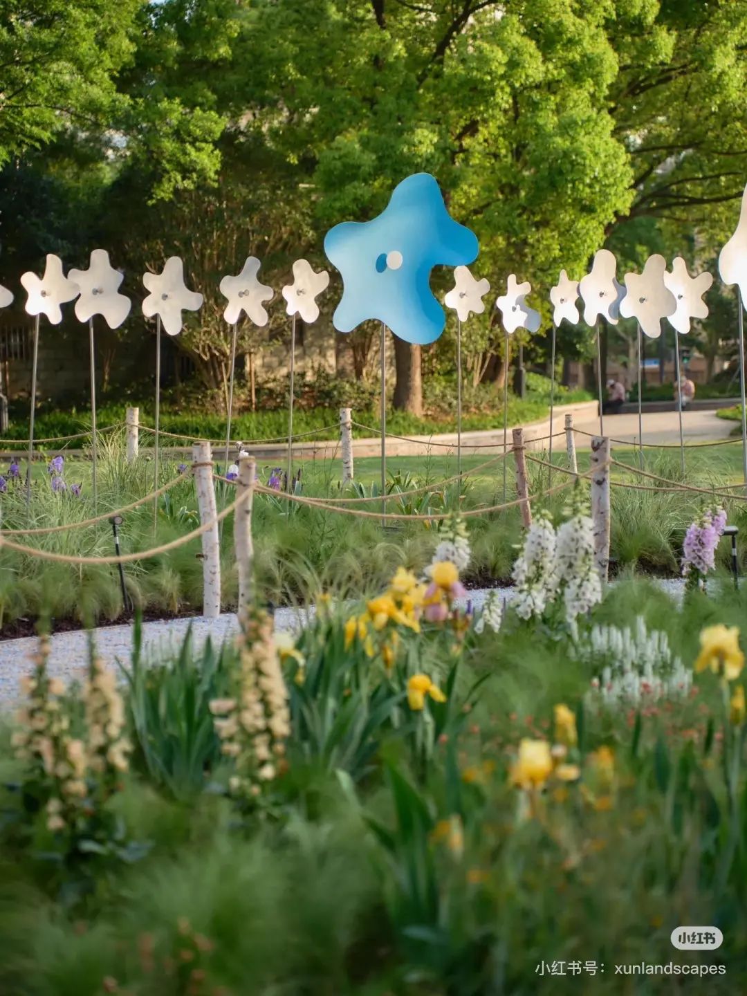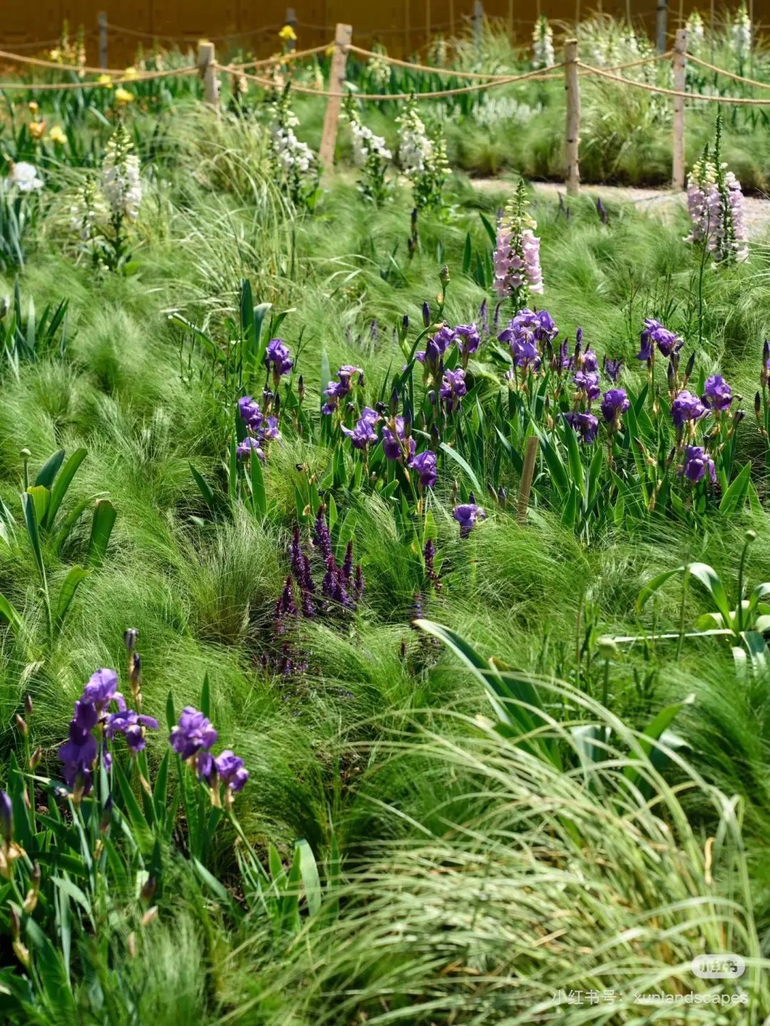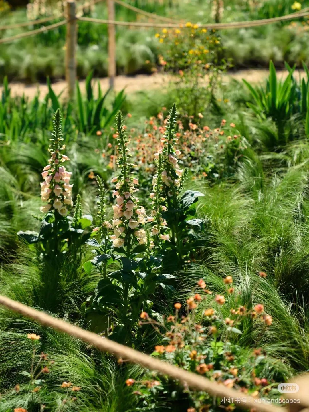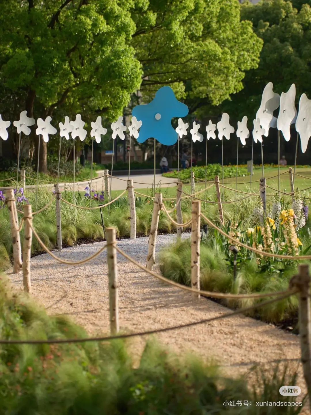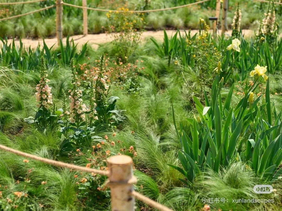 与草地不同,“草地”更注重草生植物的多样性。通过不同种类的交叉种植,未知的草呈现出层层森林染色的层次感,再加上“云风车”,成为新的打卡地。