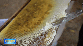 取出沉重的巢脾,用刀轻轻刮去上层的蜂蜡,露出黄澄澄和闪亮的蜂蜜,然后放入摇蜜机。当里面的离心机转动时,蜂蜜会被扔出去,过滤后会得到甜蜜的春蜜。
