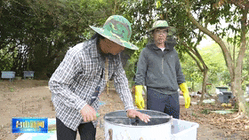 蜂农马洪辉:今年天气好,没有雨水。龙眼荔枝花开得多,蜜蜂产蜜量高。一个蜂箱产蜜量可以达到10公斤左右,所以今年是荔枝龙眼蜜的丰收年。