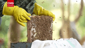 养蜂人一个接一个地打开蜂箱,采摘春蜜。他们告诉阿布,四九镇依托古兜山峰,山脉资源丰富,水土无污染,气温湿度适宜,特别适合养蜂。