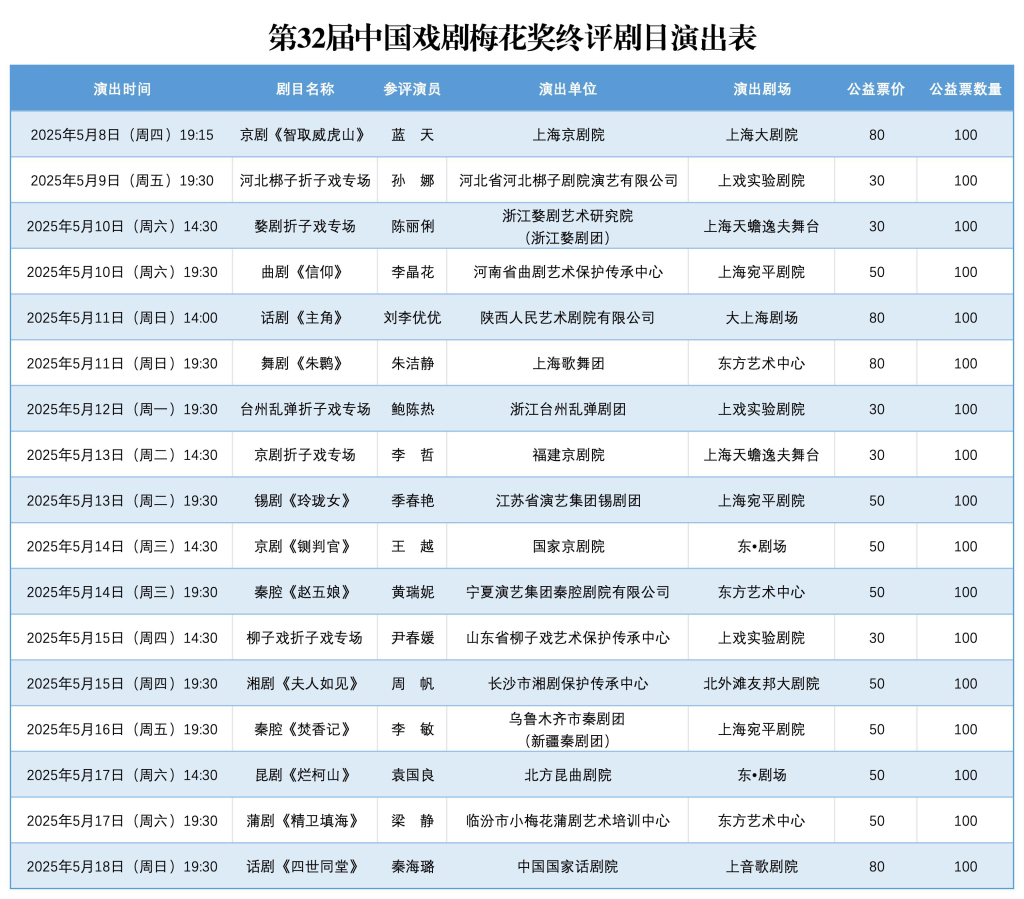 中国戏剧奖梅花奖最终评审即将开始,17场演出公益票将开售。
