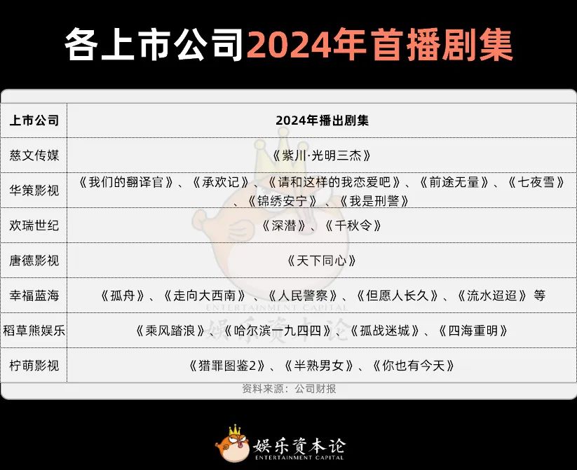 图4 2024年各上市公司开播剧集,资料来源:公司财务报告