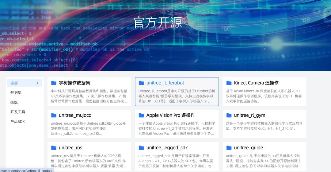 开放,或开源,是机器人行业的显著特征之一。2024年,“天工开源计划”发布,天工机器人本体、数据、运动控制等方面的成果相继向行业开源开放;在宇树科技的官网上,官方开源的数据和项目也可以很方便的找到。人类机器人的发展也是由机器人行业的开源共享一步步推动的。