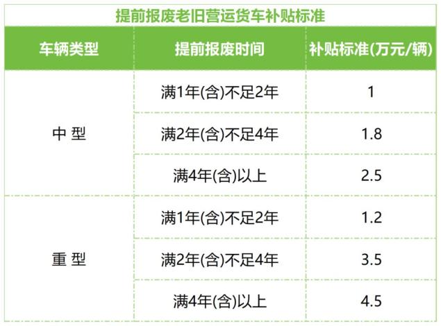 2. 提前报废旧运输货车,并按以下方法计算运输货车补贴标准:
