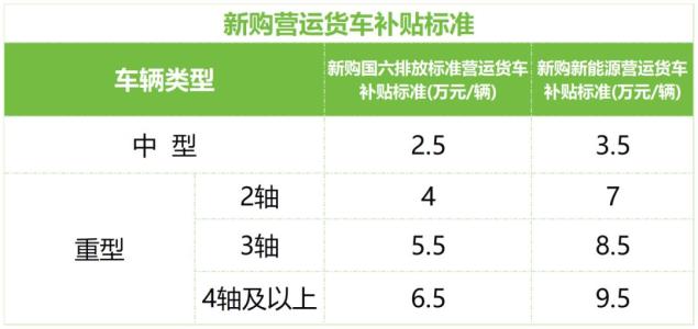 其中,购买国家六大排放标准运输卡车或新能源运输卡车补贴标准见表2。报废旧运输卡车提前报废不到一年的,可以申请运输卡车补贴。