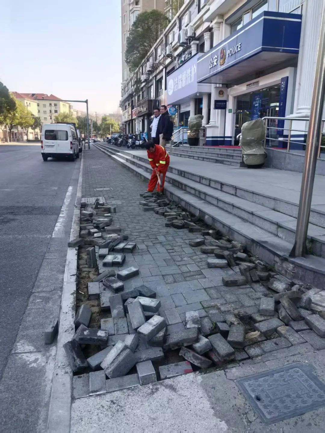 施工期间,中网汇集下沉派出所民警、安全根线力量和居委会干部,构建“三同步”保障机制:同步开展交通疏导,确保施工安全;同时组织党员志愿者向沿街商户进行宣传解释;同步建立“网格检查” 专业化维护“长效机制”。与此同时,“程新”第二党支部积极解释沿街商铺。经过一周的集中攻坚,有效地完成了部分人行道砖的修整工作,成为网格正式运行后解决的“网格第一件事”。