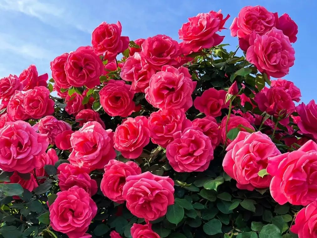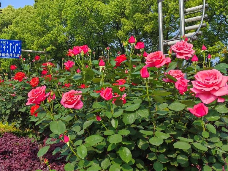 安吉拉月季和玫瑰盘绕成弧形花廊