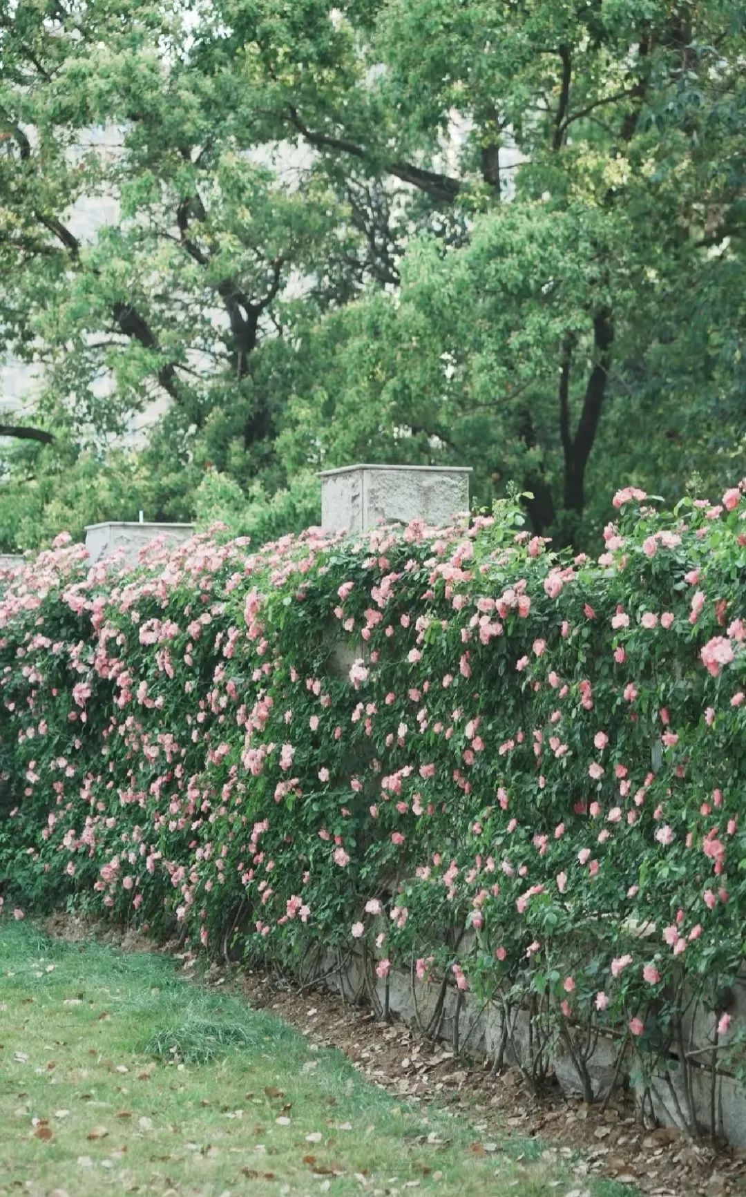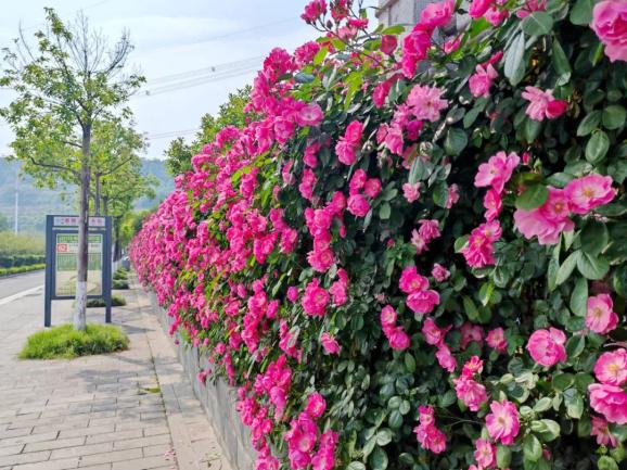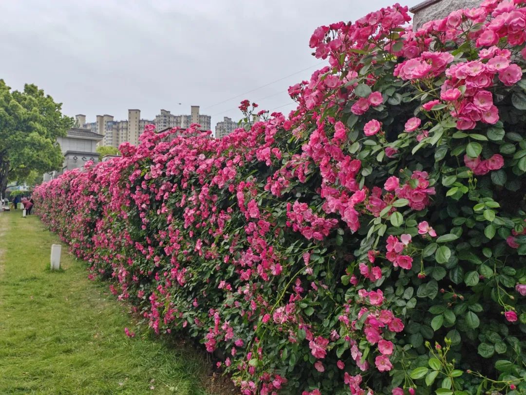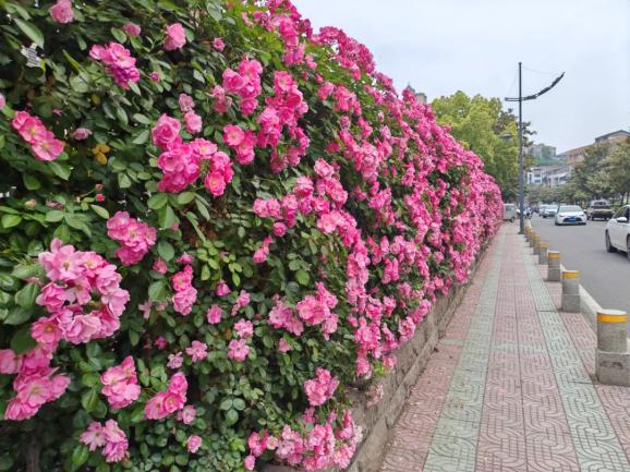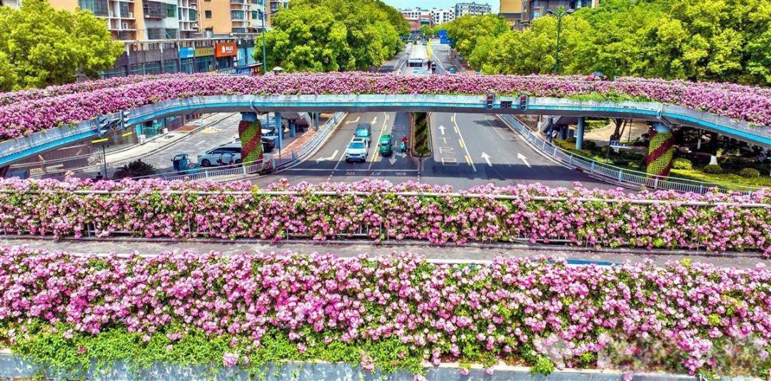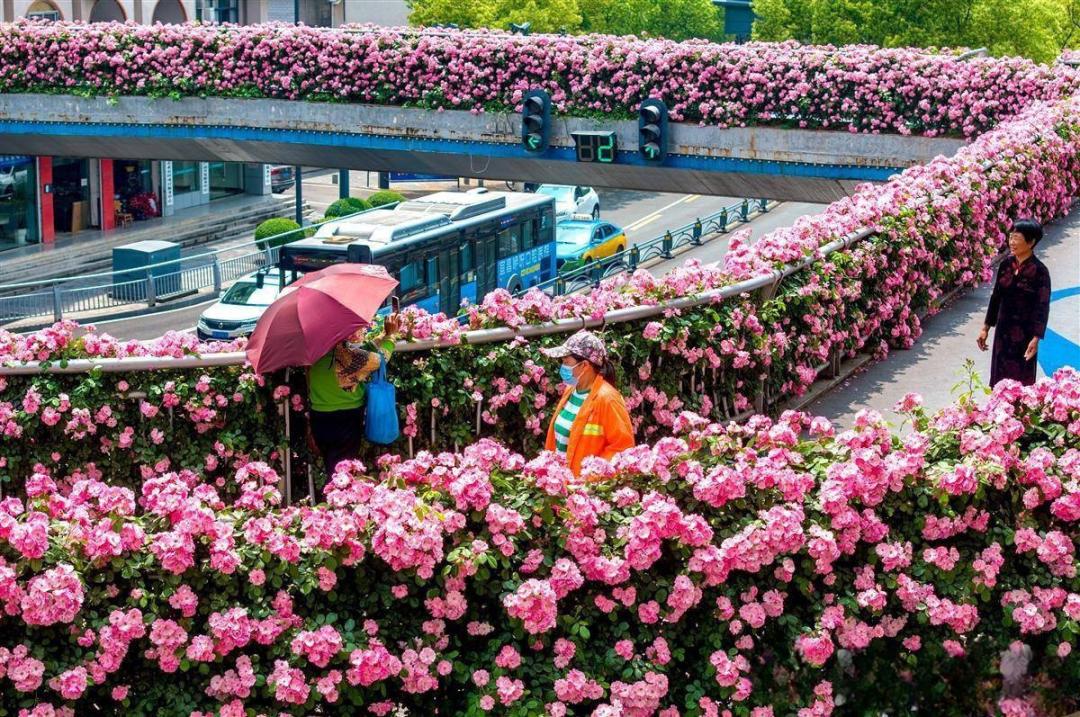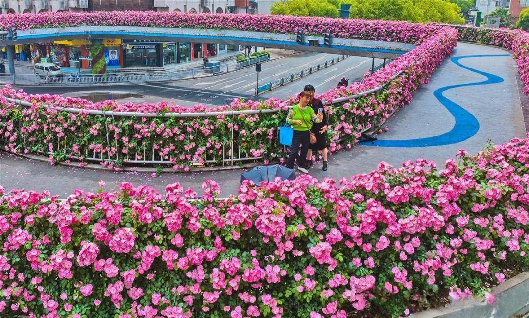 三小天桥两侧的藤本玫瑰垂落如珠帘