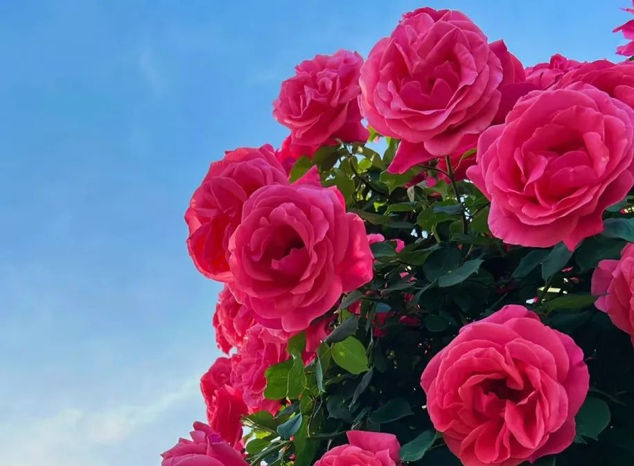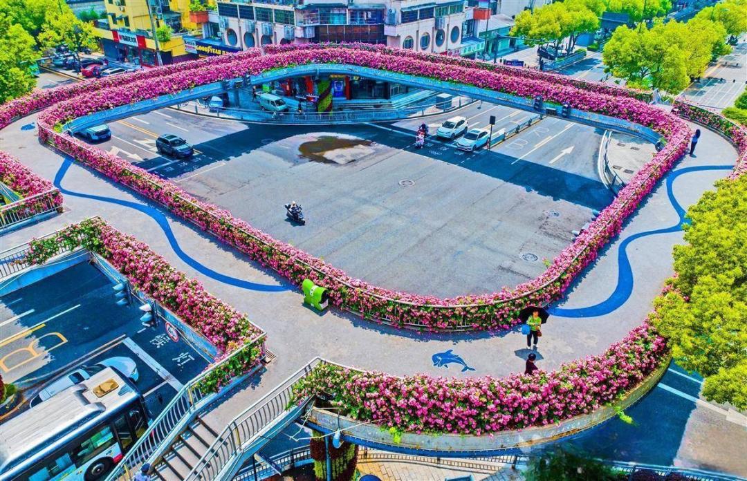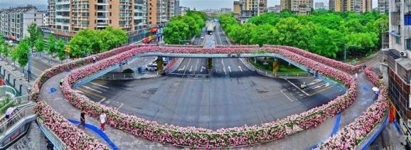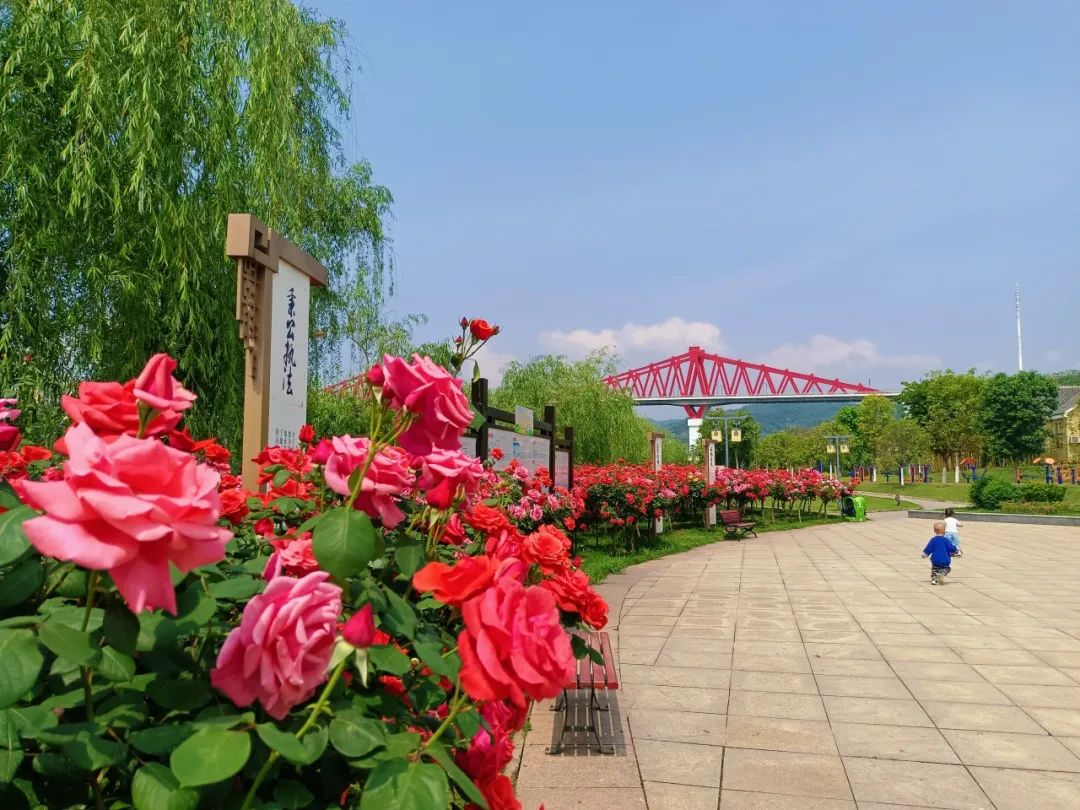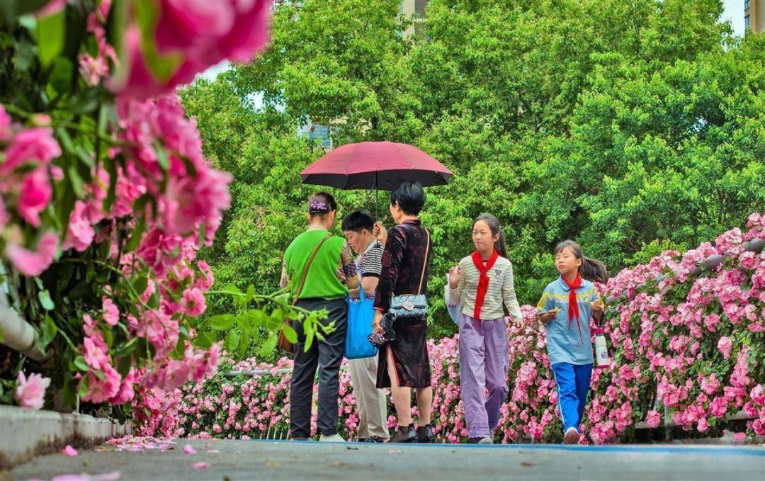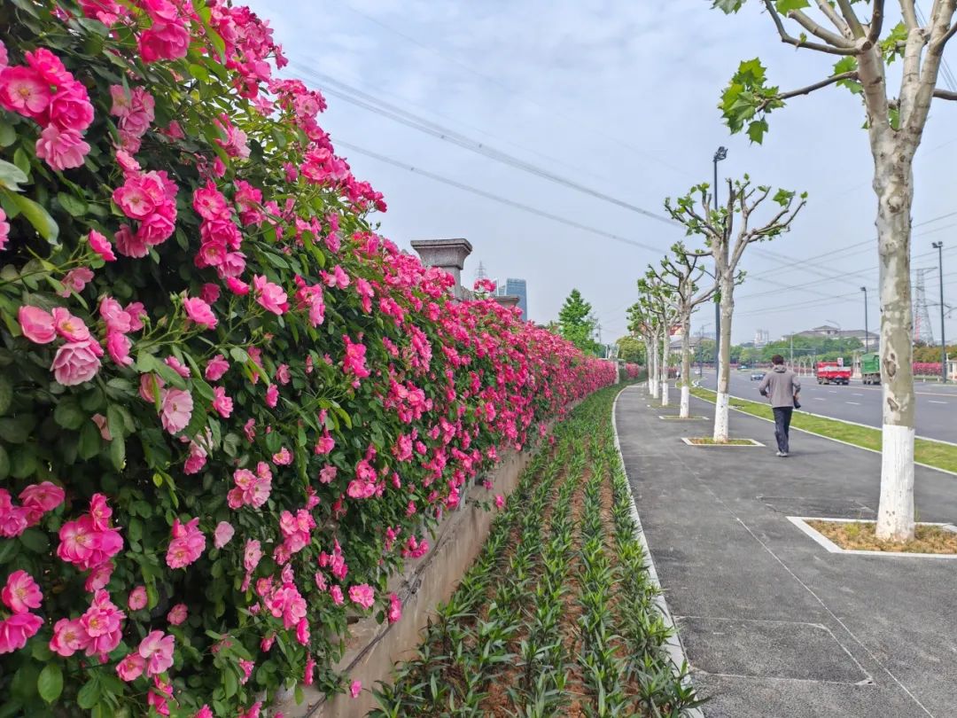 三小天桥两侧的藤本玫瑰垂落如珠帘
