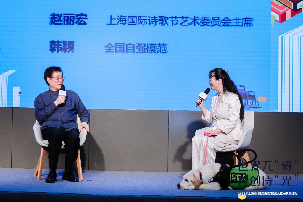 在现场,全国自强模范韩颖发布了“参加2025年市残疾人阅读系列活动的倡议”。上海市作家协会副会长赵丽宏鼓励更多残疾人参与文学表达。《AI时代生存手册》的作者黄震炜带来了一场关于如何打破残疾人信息鸿沟,释放创造潜力的科技助残微讲座。