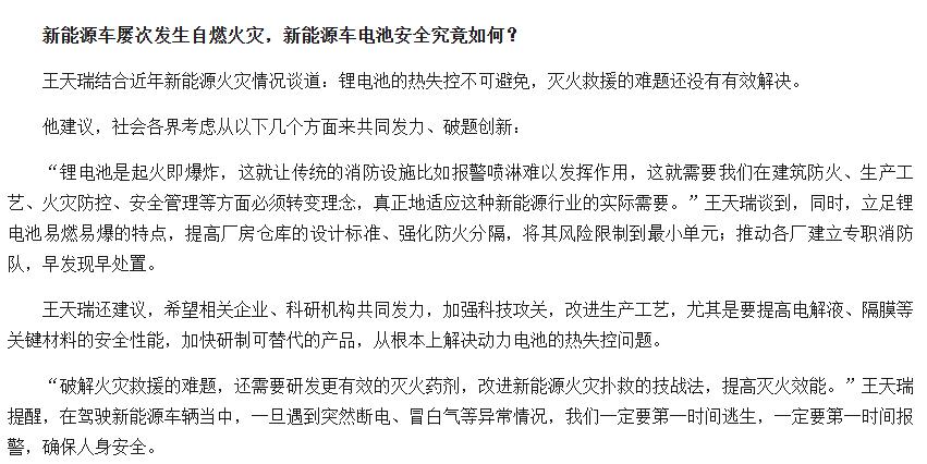 毕竟电池是通过正负极氧化和氧化反应工作的,自带氧化剂和氧化剂。目前的技术只能让它慢慢燃烧。国家消防救援局消防监督司指挥长王天瑞之前也说过,锂电池热失控是不可避免的。