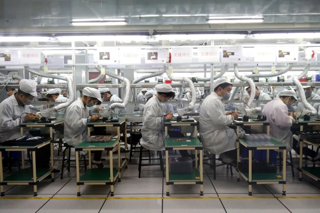 工人们在生产线上工作的郑州富士康