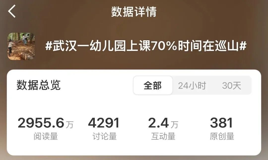 不久前,“武汉一幼儿园70%的课程都在巡山”这一词条一度火爆起来。