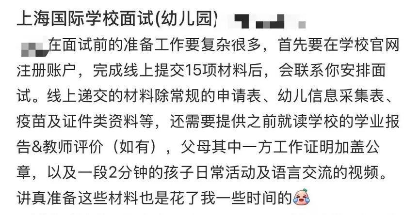 即使是父母也需要参加面试,不仅要透露家庭情况,还要提供加盖公章的工作证明,还要准备解释选择幼儿园的原因和讨论自己的情况。