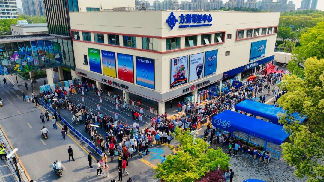 因为排队的顾客太多,店铺不得不提前开门。面对汹涌的人群,门店只能分阶段进行人群控制,确保购物秩序和客户安全。