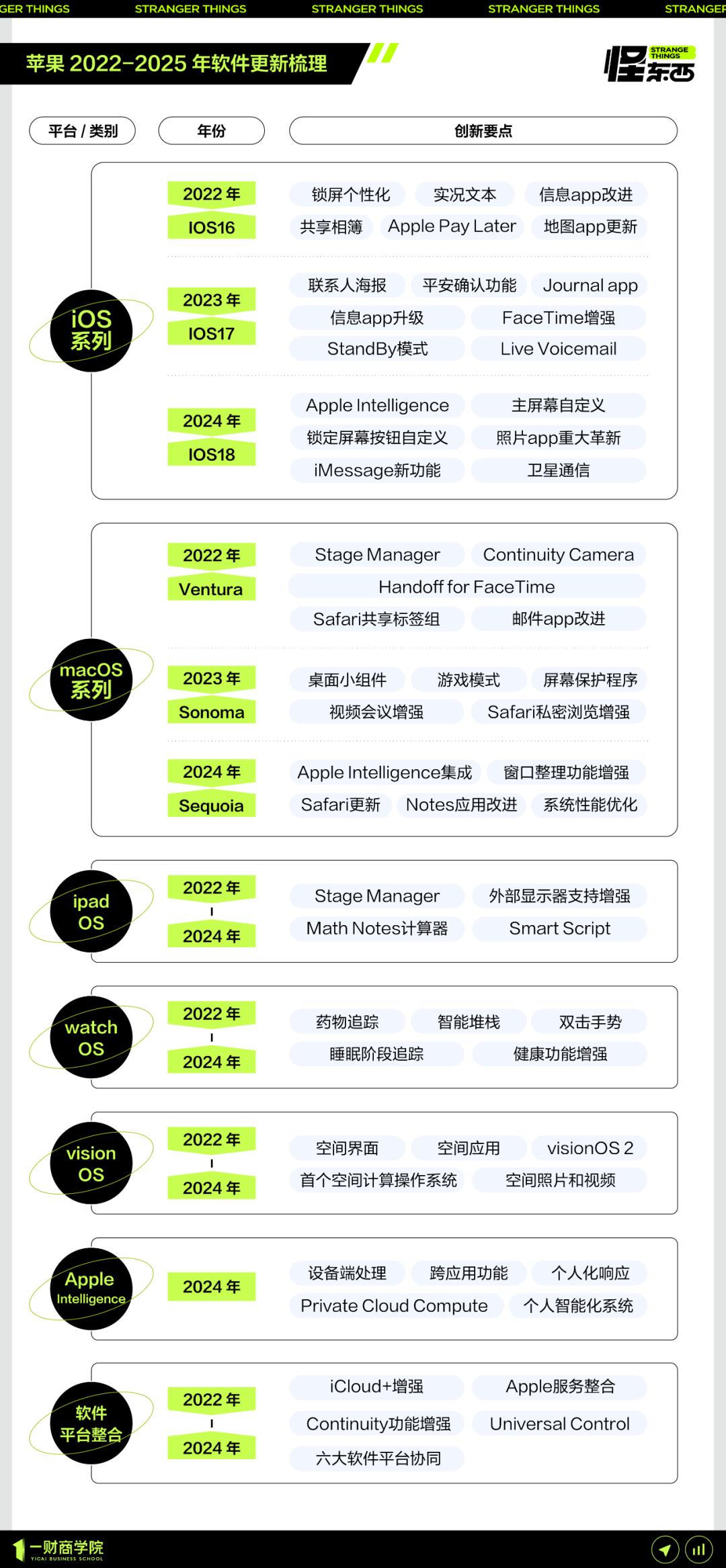 另外,AI也不是苹果技术研发的重点。从近三年的软件更新技术动态可以看出,苹果所做的基本都是微创新。